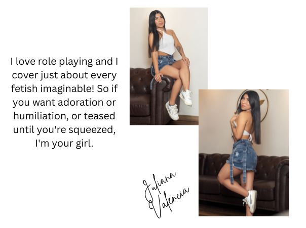 You can ASK FOR A DATE with Juli Valencia at your convenience. Everything is in your timezone, your local hours. She will receive your request and accept it if her schedule is free. You will receive a confirmation via email and you can prepare for your hot experience.