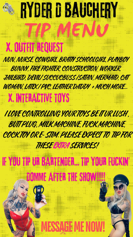 Посмотреть больше моделей из тегов Ryder D Bauchery: fetish / heels / femdom / findom / tattoos / cei / bdsm / mistress / sph / boots / CBT / footfetish / goddess / strapon / Domme / tattoo / footworship / fishnets / kink / fastresponse